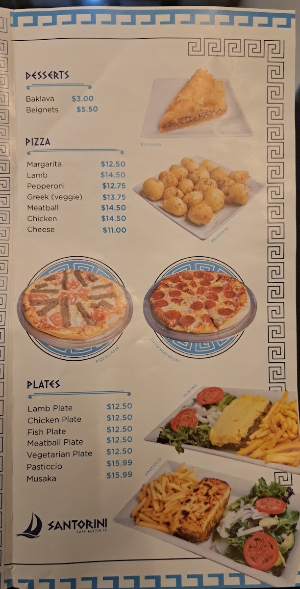 Welcome to Santorini Cafe, a delightful corner of Greece nestled in Austin, Texas. The menu exudes authenticity, featuring mouthwatering gyros, plates, and traditional Greek dishes. Each gyro, be it lamb, chicken, or vegetarian, is crafted with love, all priced at an accessible $10.75.